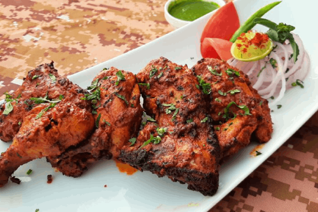 Traditional Punjabi-style chicken, marinated in earthy spices, slow-cooked over charcoal for a smoky flavor.